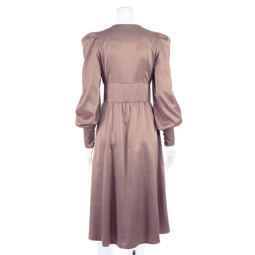 EDressU 2021 Стильное женское платье высокого качества атласное длинное коктейльное платье Элегантное винтажное платье с рукавами-фонариками офисное SJY-6899
