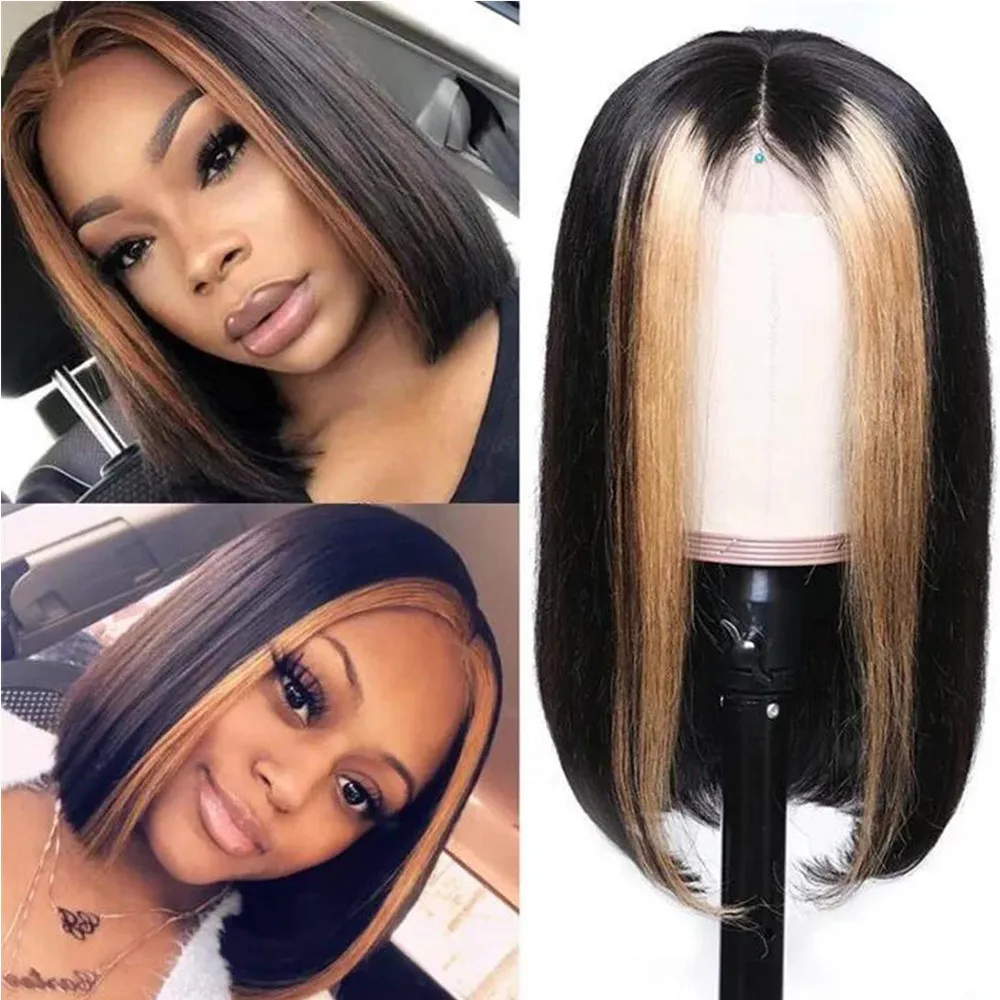 13x4 Выделите эффектом деграде (переход от темного к прямые волосы Синтетические волосы на кружеве парики из натуральных волос, 130%-180% плотность, бразильский Реми человеческие парик короткий парик, короткая стрижка