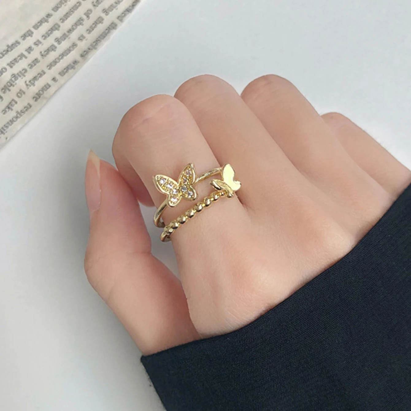 Женское Винтажное кольцо с бабочкой, регулируемое кольцо с изменяем...