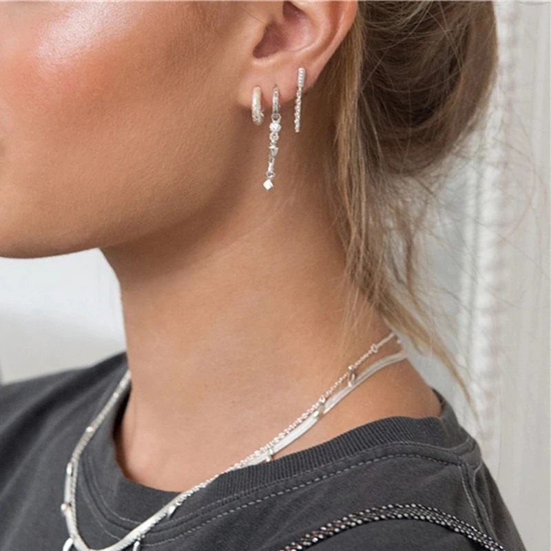 Oorbellen zilver 925 тассель цепь квадратный Циркон пирсинг серьги ...