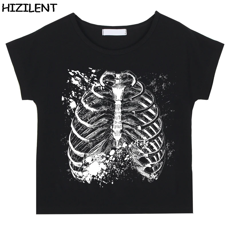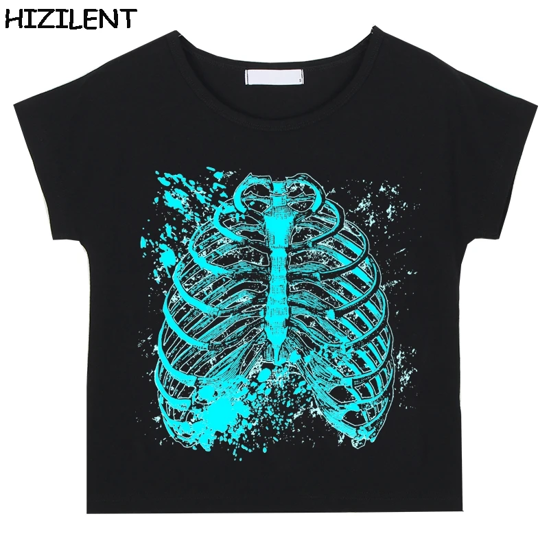 Женская футболка с принтом скелета, в стиле Харадзюку, Готическая, летняя, уличная, укороченная, y2k