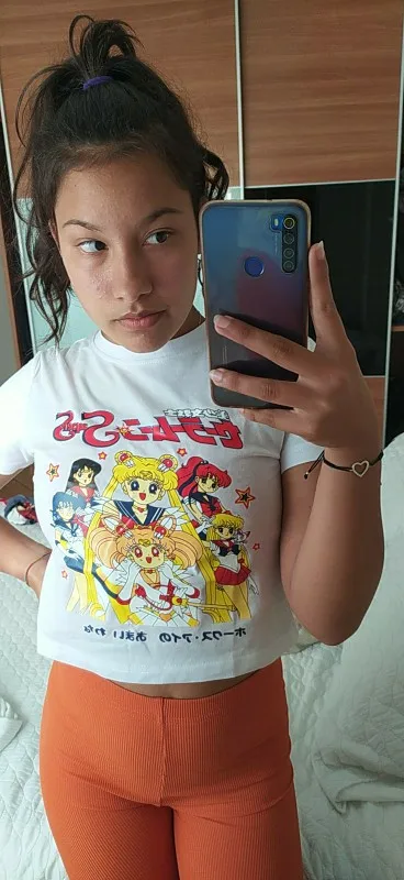 Топ пришел так мило, я рекомендую выбирать размер очень внимательно, потому что XL-это самый большой размер. Азиатские размеры очень маленькие. В целом, милый дизайн топа не напечатан на мне, но он все еще хорош!