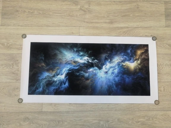 Картина маслом на холсте с изображением разноцветной туманности обл...