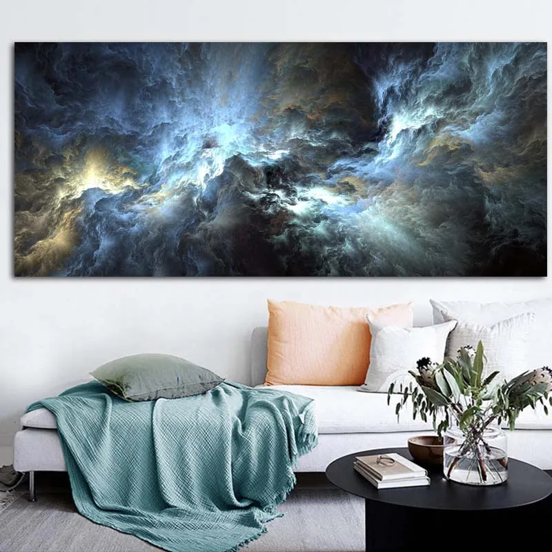 Постер CHENFART в скандинавском стиле, синее, черное облако, пейзаж...