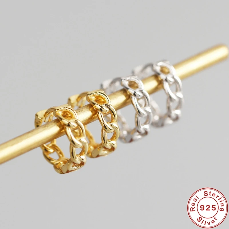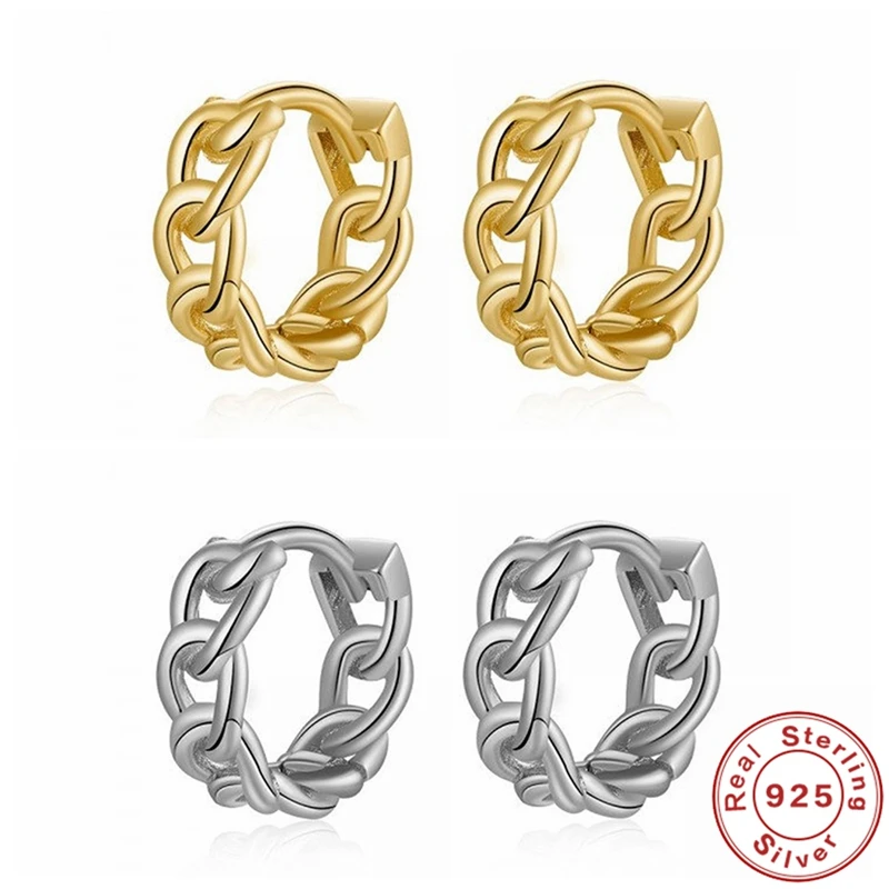 Классические маленькие золотые серьги-кольца с цепочкой, простые круглые женские серьги в стиле панк, ювелирные изделия из стерлингового серебра 925 пробы, клипсы для ушей