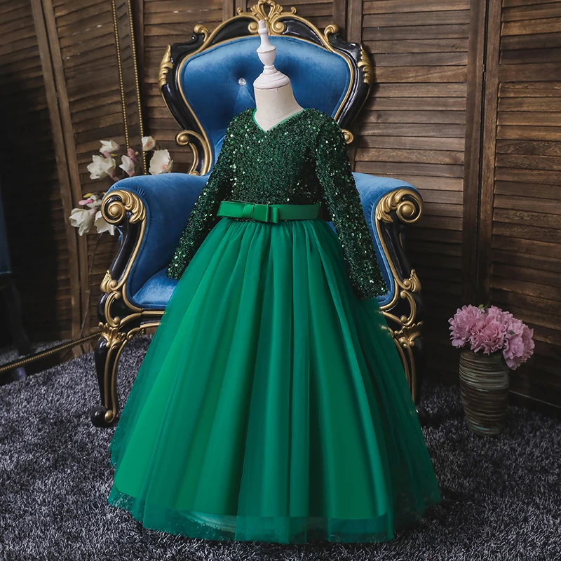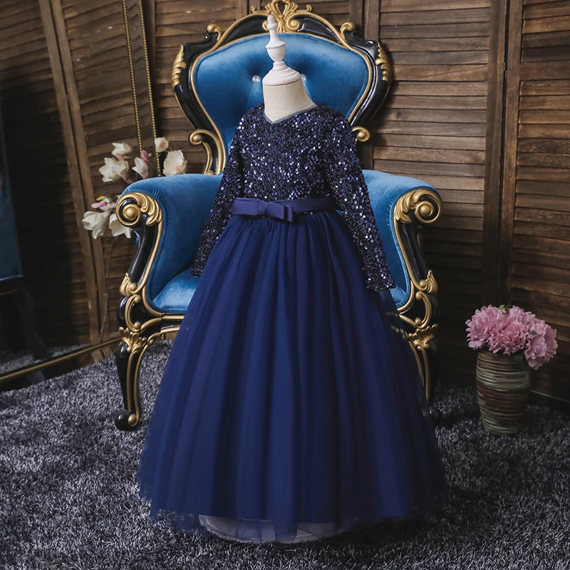 Платье с длинным рукавом для девочек, платья для свадебвечерние, ко...