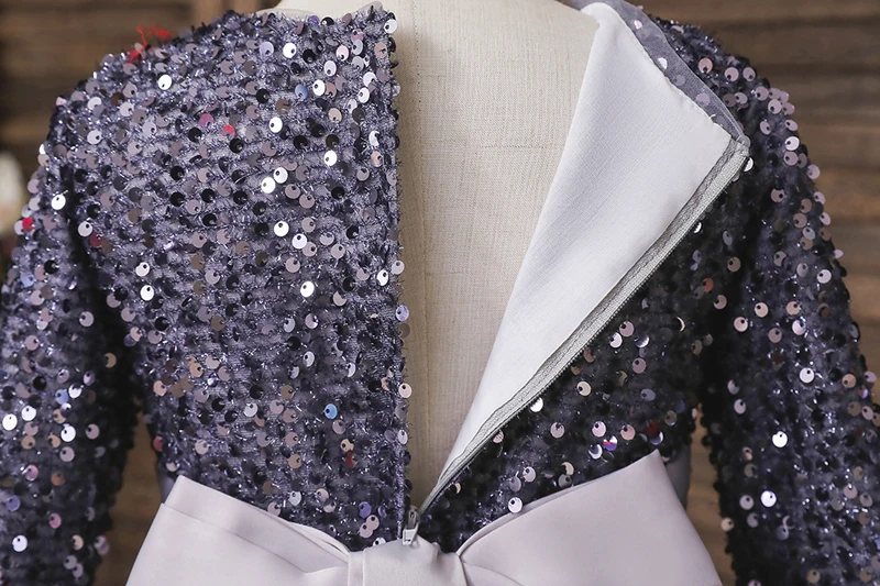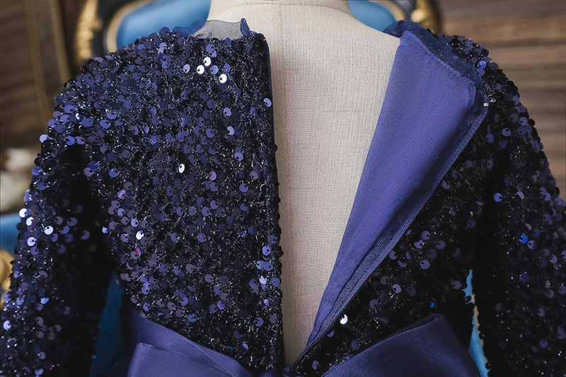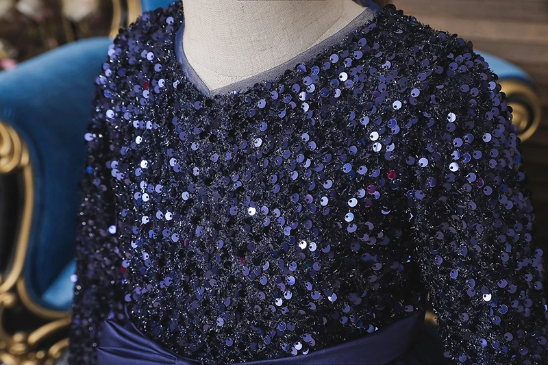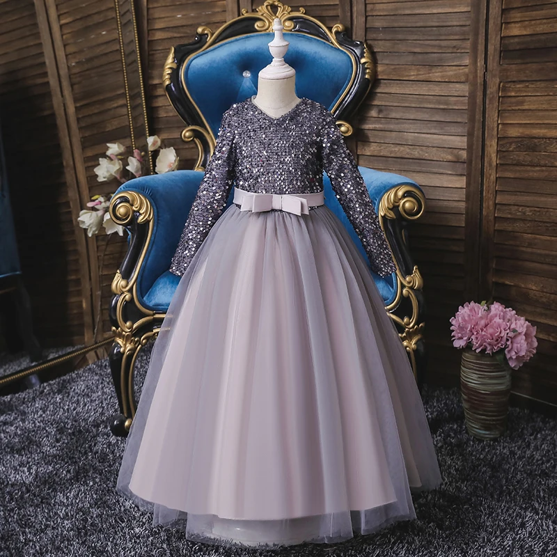 Бальное платье с длинным рукавом и блестками для девочек, атласное ...