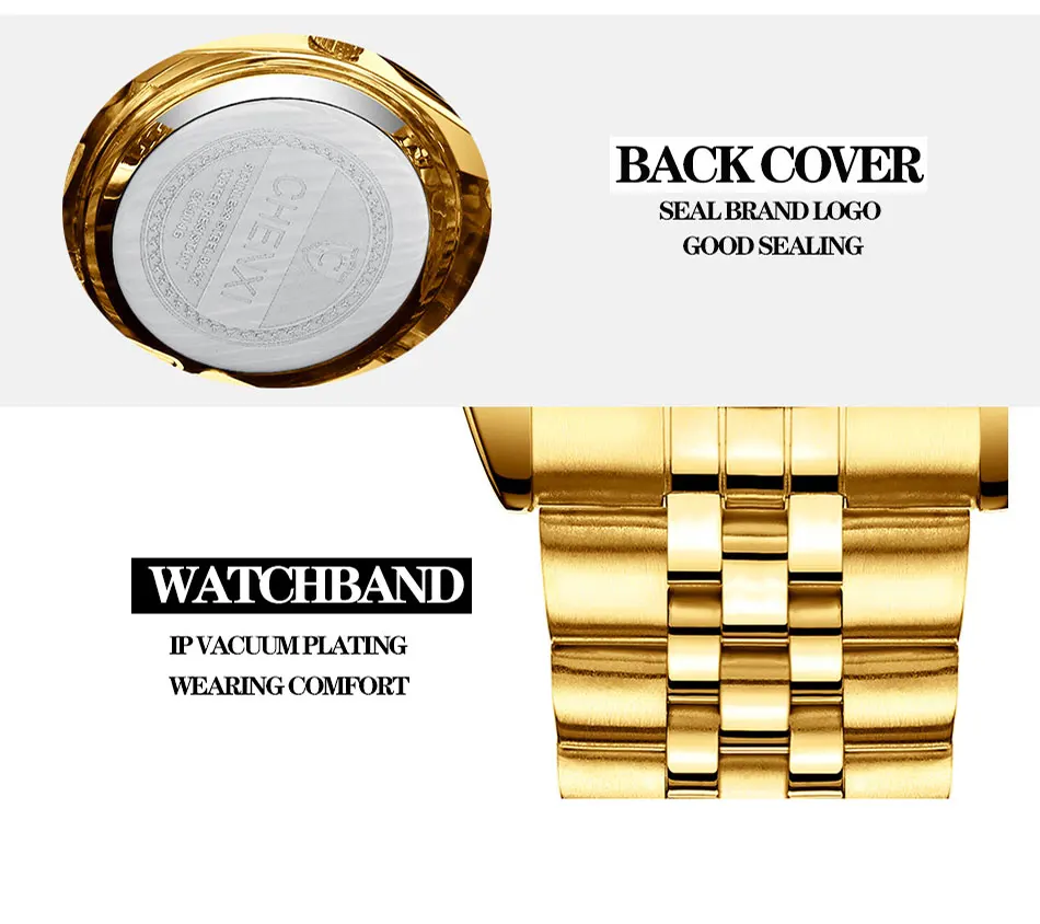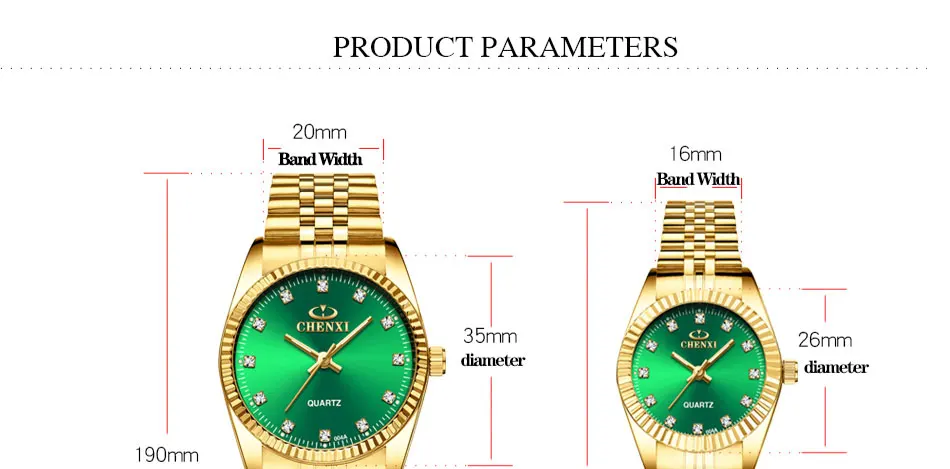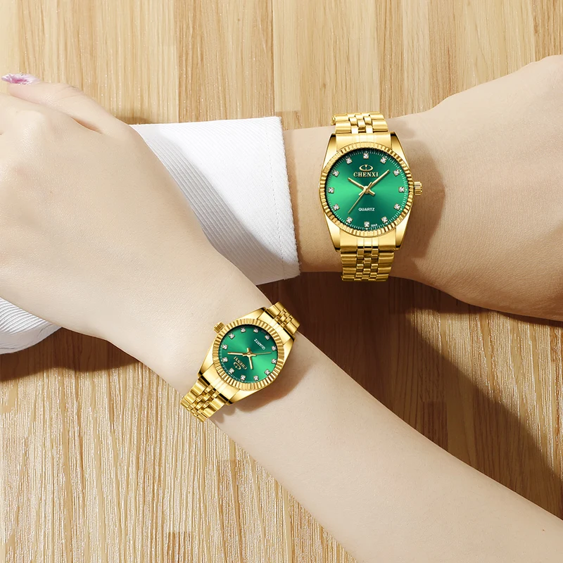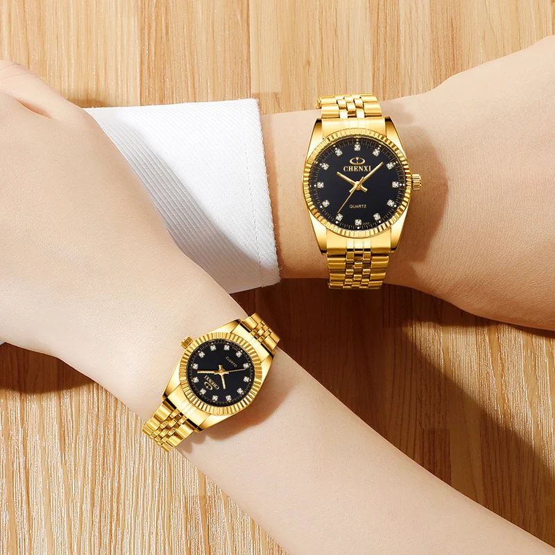 Часы наручные CHENXI для влюбленных, брендовые водонепроницаемые деловые кварцевые золотистые, для мужчин и женщин, роскошные
