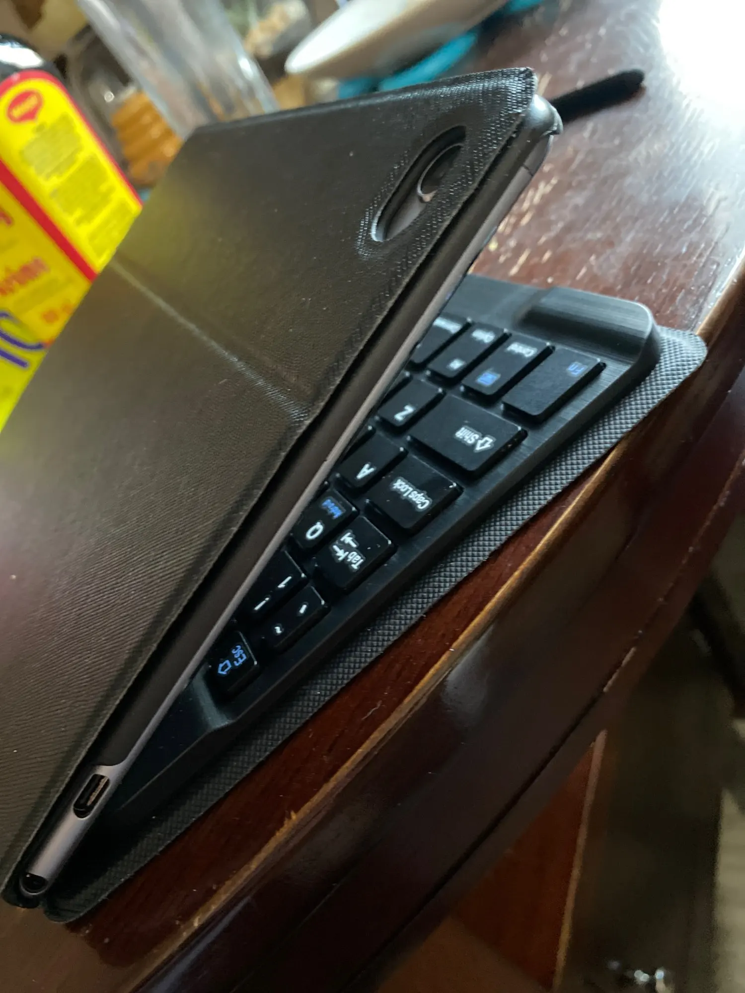 Красиво выглядит. Но я бы хотел, чтобы был шнур для зарядки клавиатуры, а также я хотел бы закрыть чехол с помощью клавиатуры. По крайней мере, есть Милый Стилус