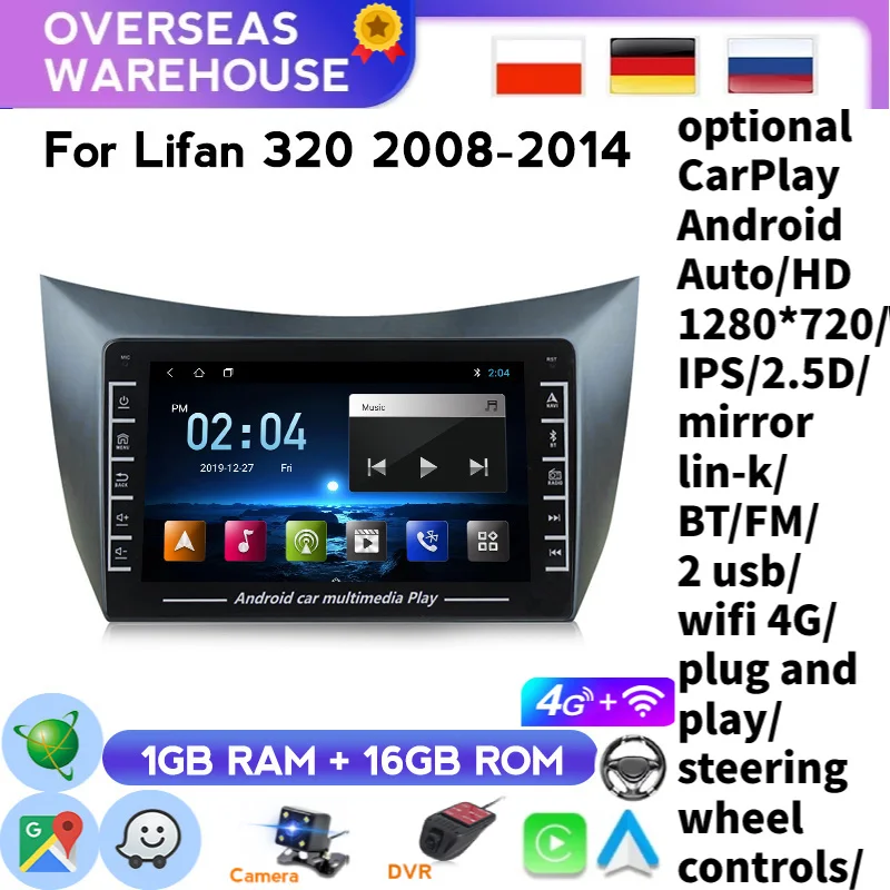 Автомагнитола для Lifan Smily 320 2008-2015, мультимедийный видеоплеер, навигатор GPS, Android, 2din, без DVD, поддержка нескольких языков