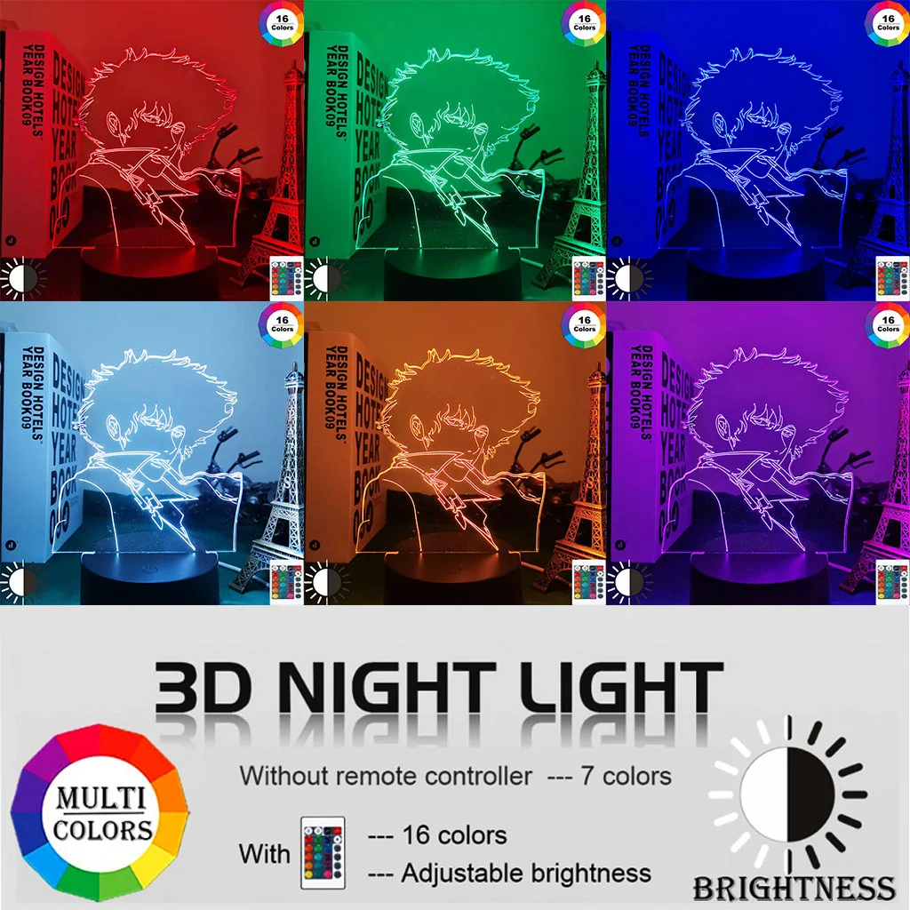 СВЕТОДИОДНЫЙ ночник в стиле аниме, декоративная настольная лампа с Ковбой Бибоп Спайк Шпигель для спальни, подарок на день рождения, 3d светильник