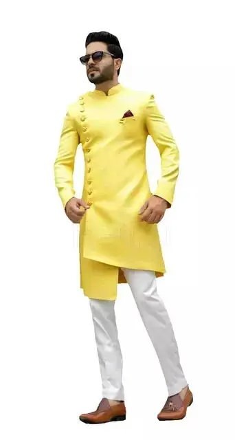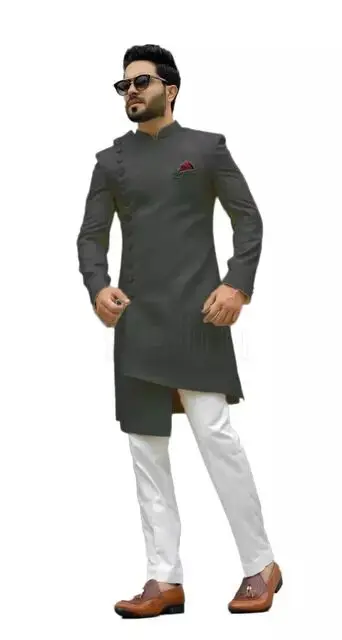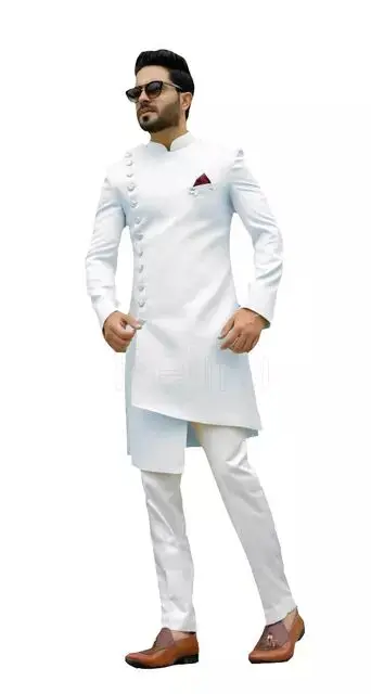 Indian traditional Style Groom Wedding Dress Navy Blue Long Jacket White Pant Groomsman Custom Made Tuxedo 2 pieces Bridegroom