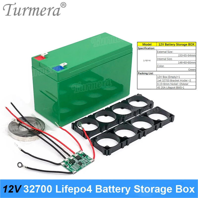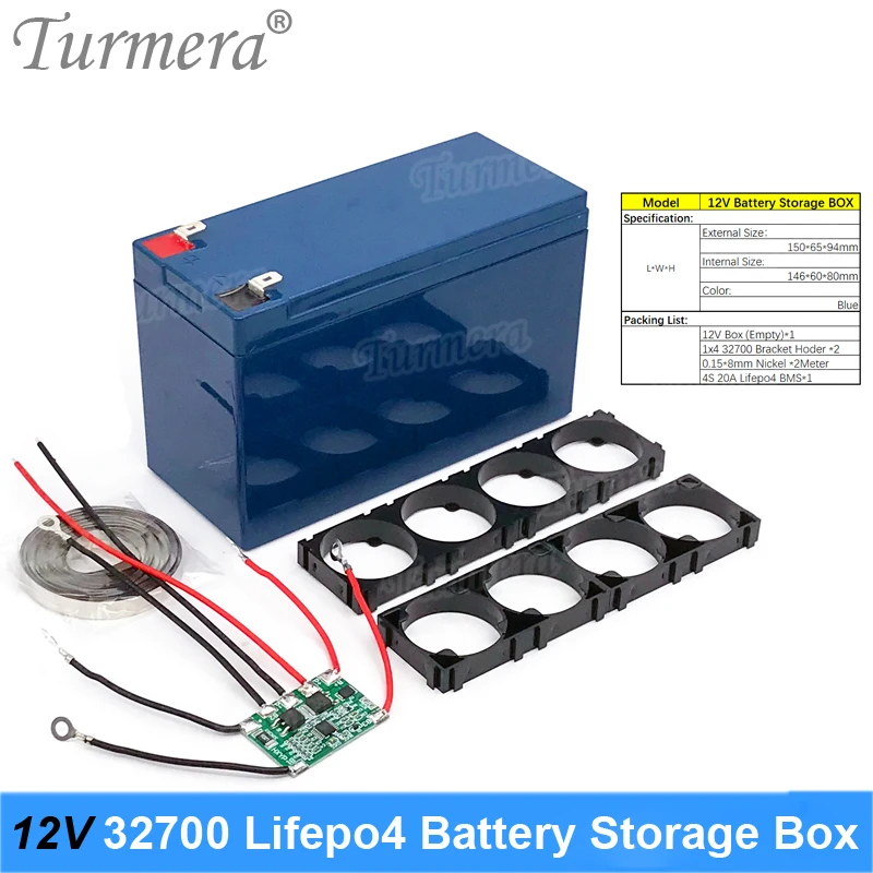 Контейнер для хранения аккумуляторов Turmera 32650, 32700, Lifepo4, с 1 кронштейном 1x4 для бесперебойного питания 12 В, 7 Ач и аккумулятора для электровелосипеда