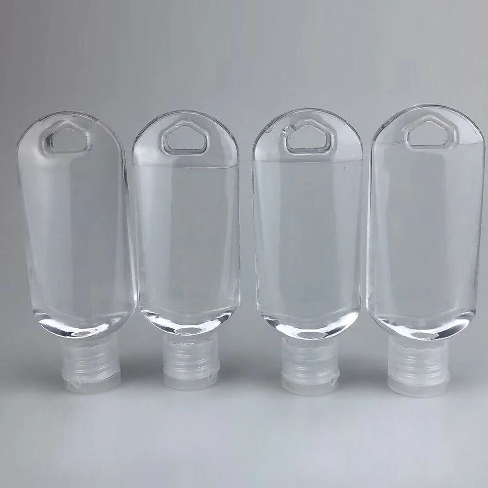 Прозрачная бутылка для макияжа, 10 шт., 50 мл, многоразовая портативная бутылка мини-размера для спиртового распылителя, дезинфицирующее средство для рук, маленький держатель, брелок с крючком