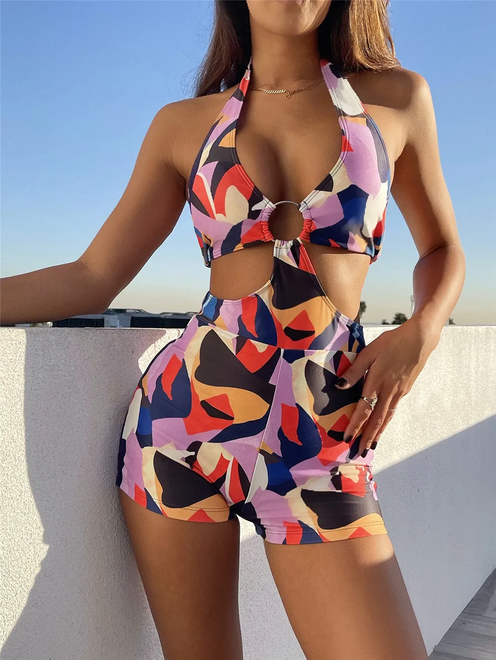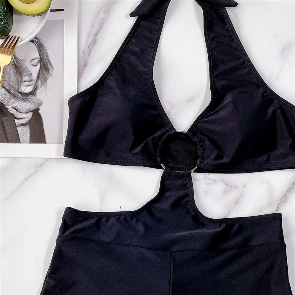Vigoshely 2021 сексуальная одежда для плавания с лямкой на шее, женский слитный купальник с высокой талией, Женский Монокини, купальный костюм с вырезами и металлическими кольцами