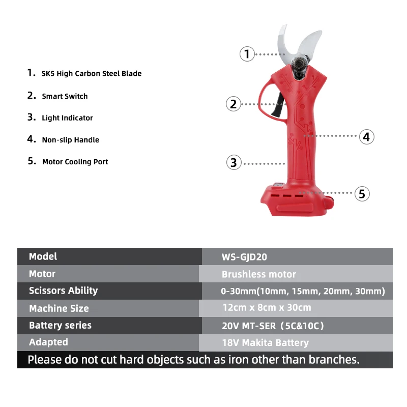 Беспроводной бесщеточный секатор WOSAI 20 в, Электрический секатор для обрезки фруктовых деревьев, бонсай