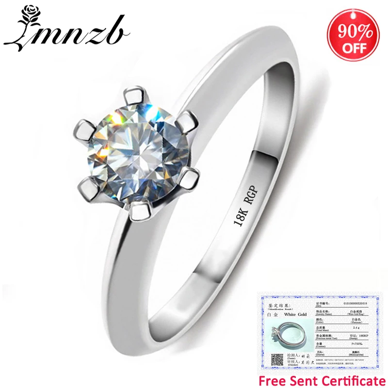 С сертификатом 18 К белое золото 925 пробы кольцо солитер 1 карат л...