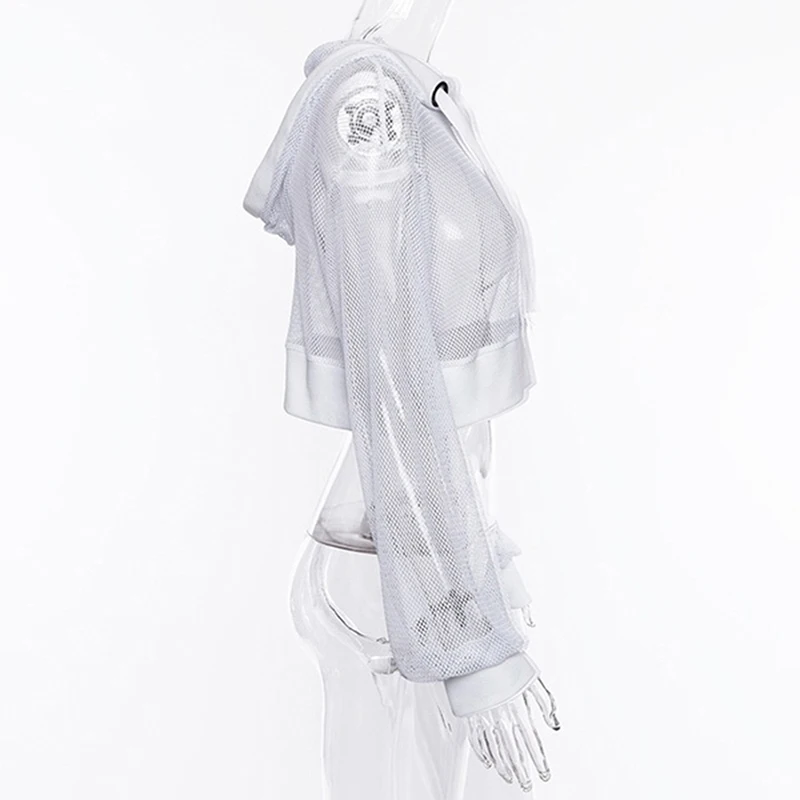 Женский сетчатый топ с длинным рукавом, укороченный топ с капюшоном...