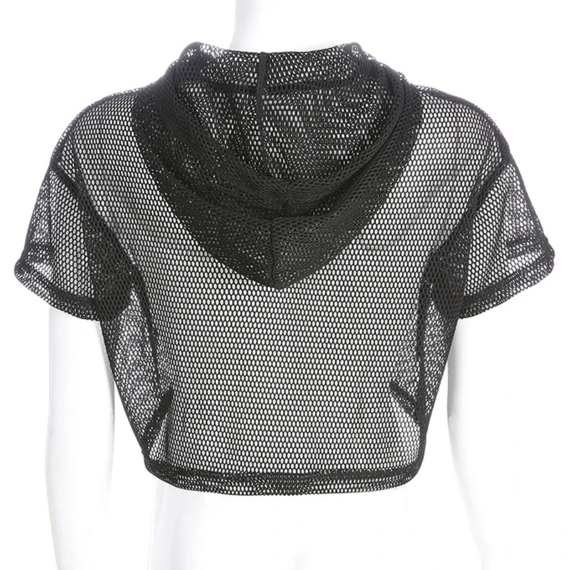Женская ажурная Сетчатая футболка с капюшоном, футболки с коротким ...