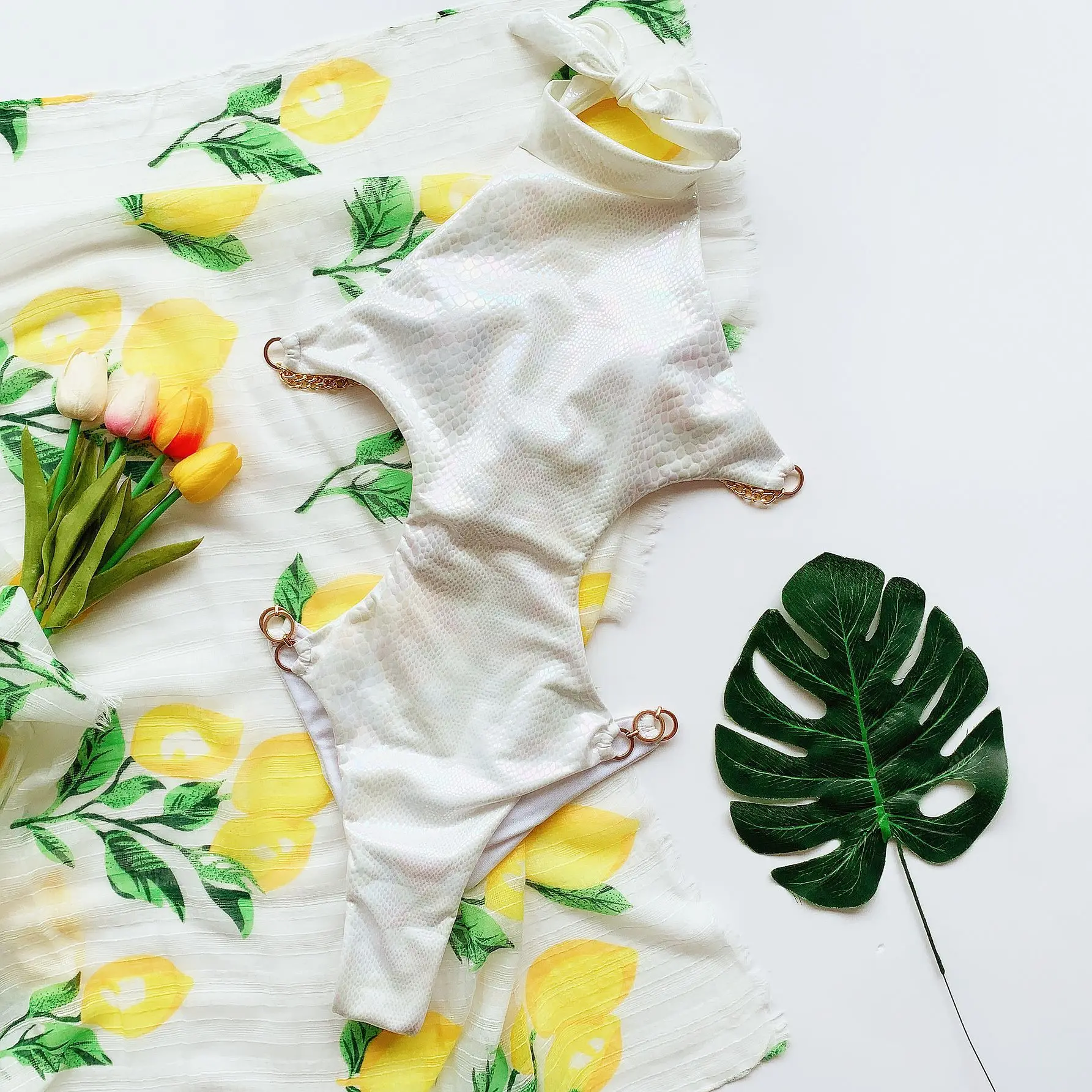 Новинка 2021, женский слитный купальник, сплошная цепочка, бандажный Змеиный светоотражающий монокини с открытой спиной, купальник, женский купальник для пляжа