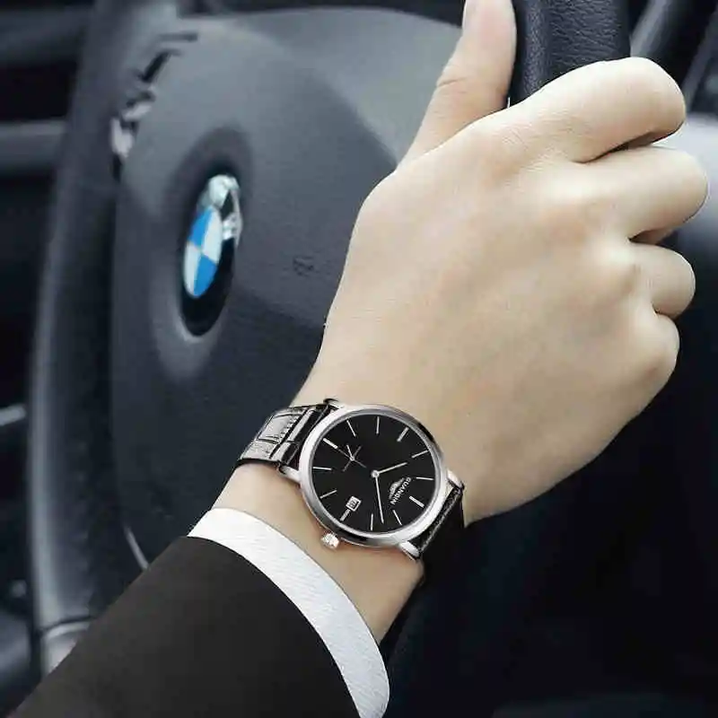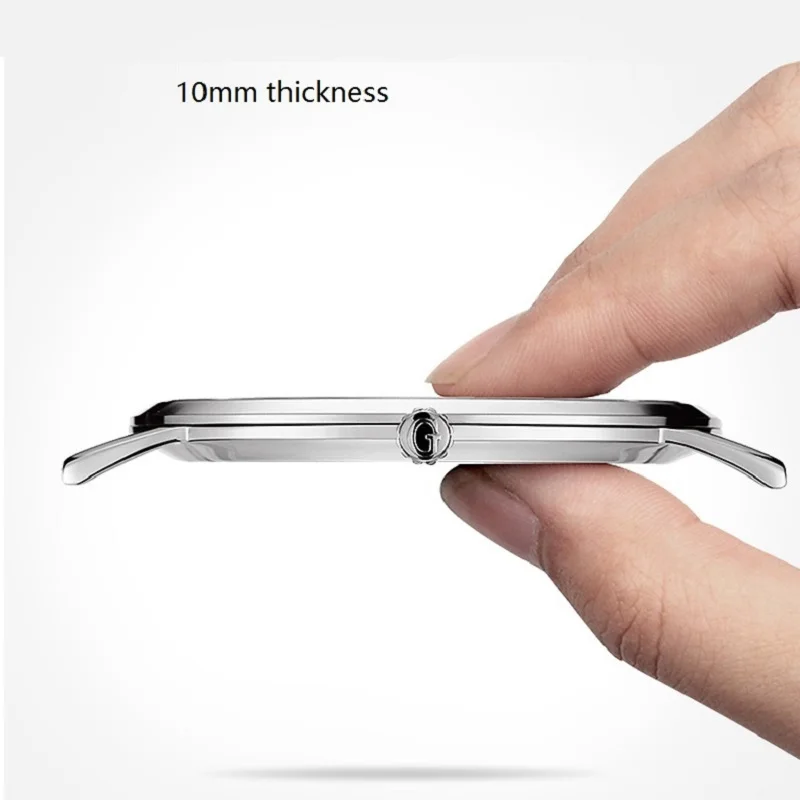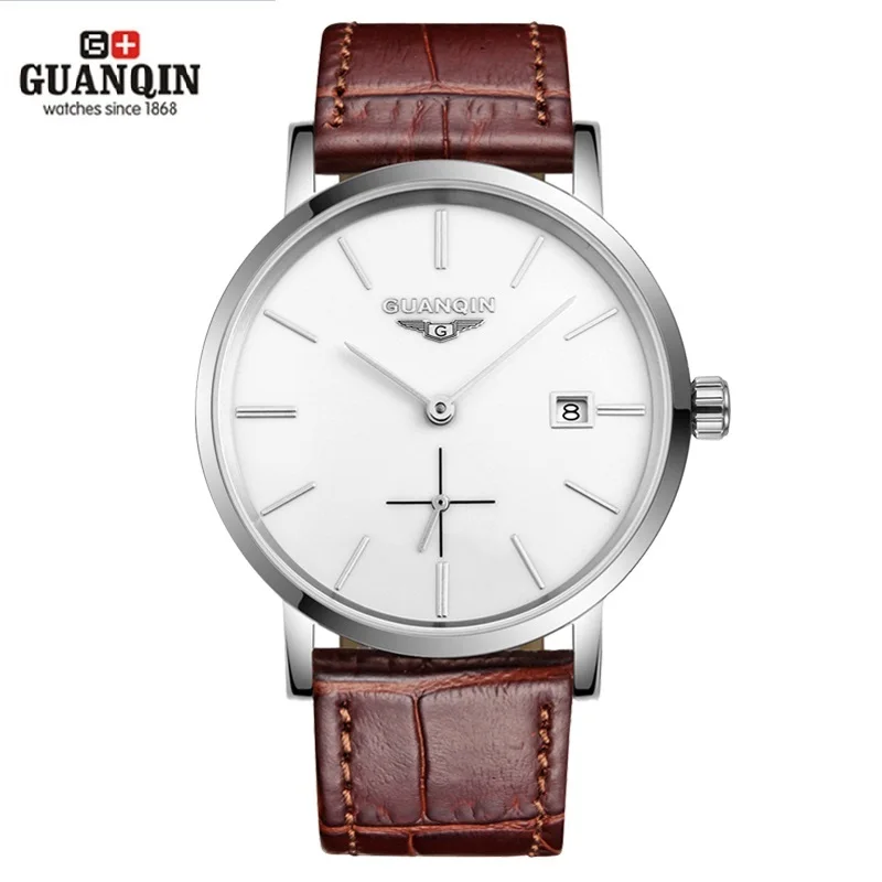 Часы наручные GUANQIN Мужские механические, брендовые Роскошные ультратонкие, с календарем, водонепроницаемость 30 м, 10 мм