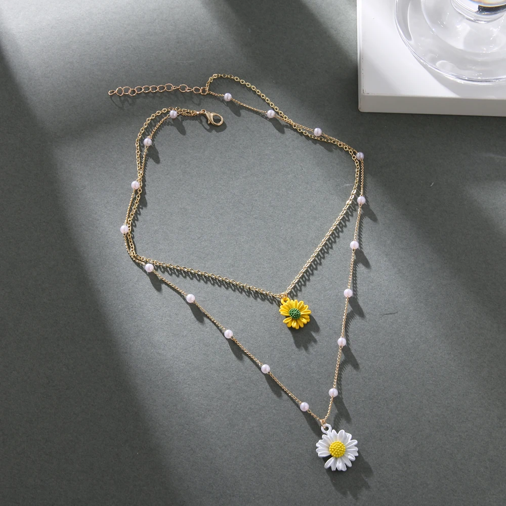 Модное ожерелье с двойной ромашкой и цветком, ювелирные изделия для...