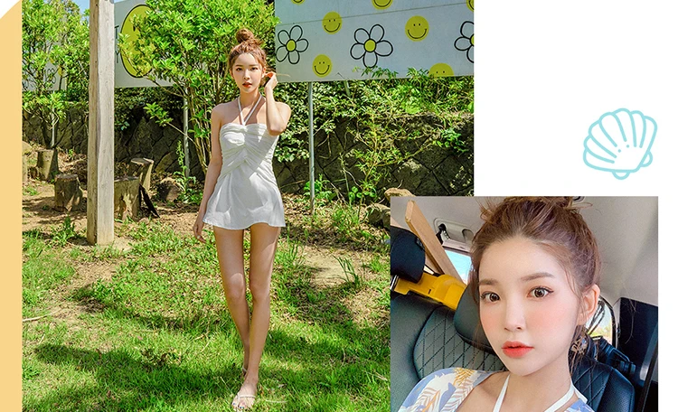 Цельный купальник в Корейском стиле, Однотонный женский купальник, ...