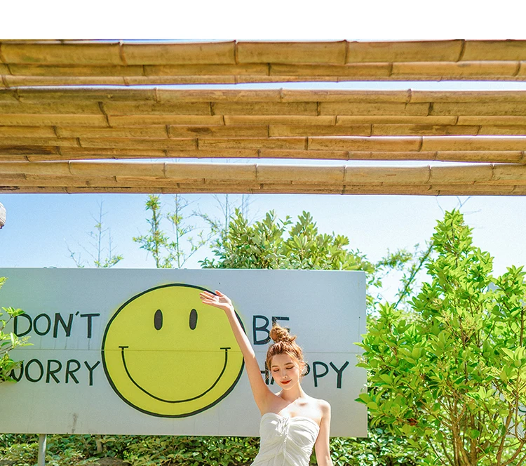 Цельный купальник в Корейском стиле, однотонный купальник, бандажны...