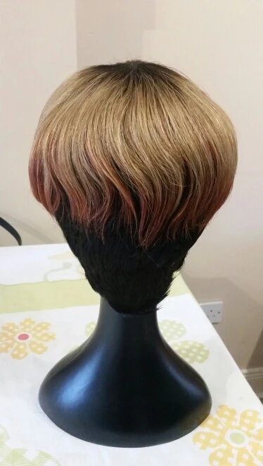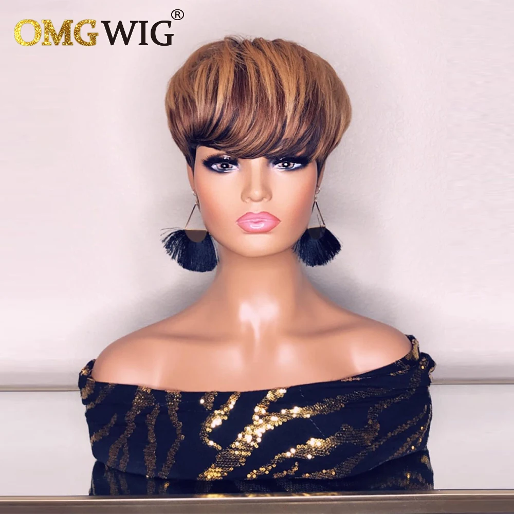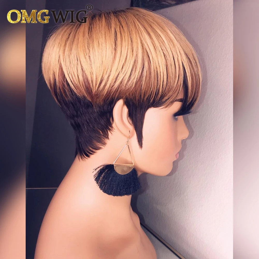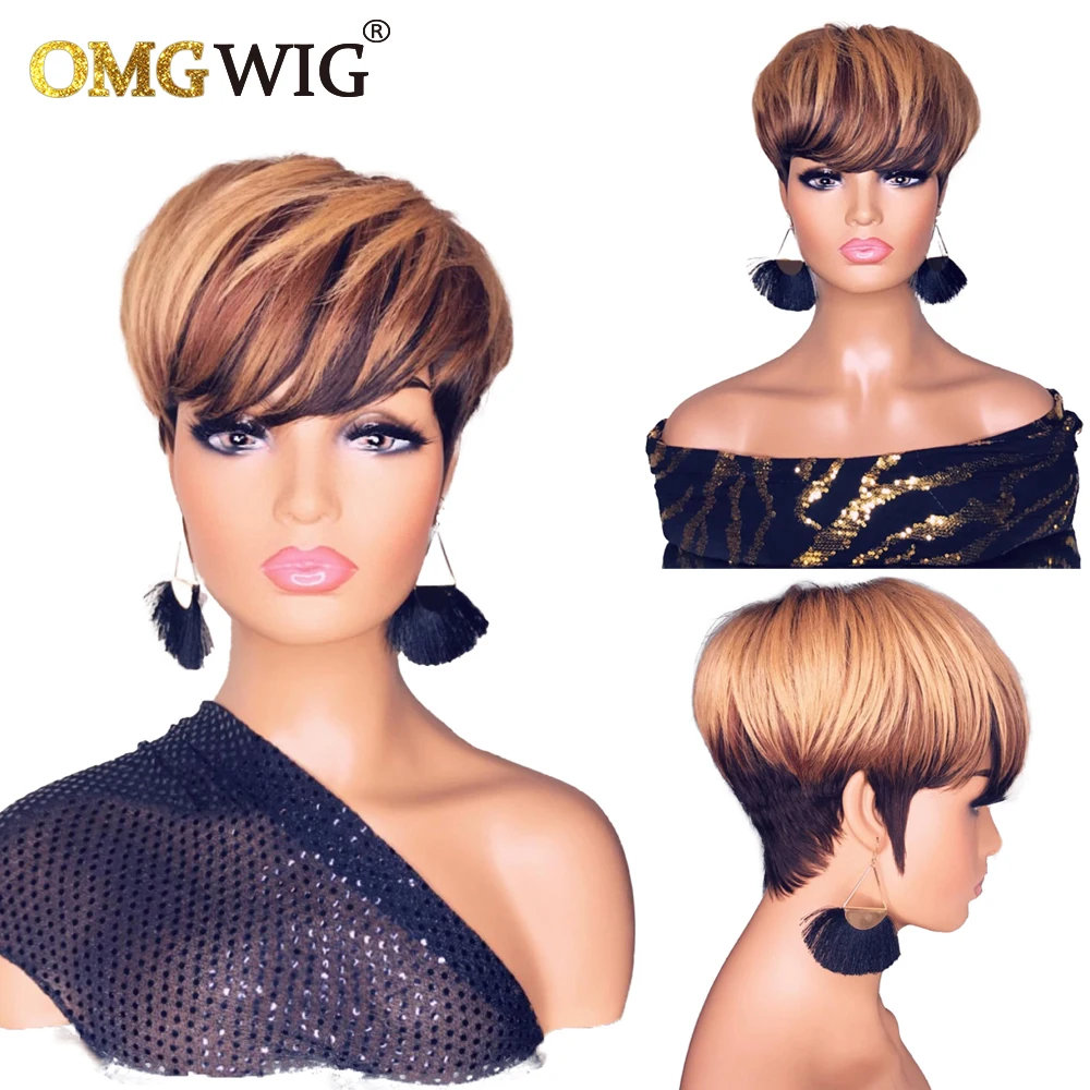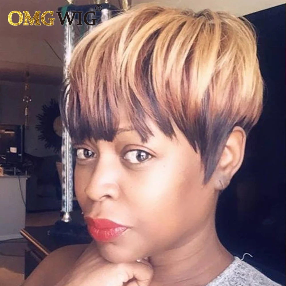 Ombre T1B3327 человеческие волосы, короткие парики для чернокожих женщин, прямые волосы, Боб, пикси, медовый блонд, бразильские волосы, без кружева, с челкой