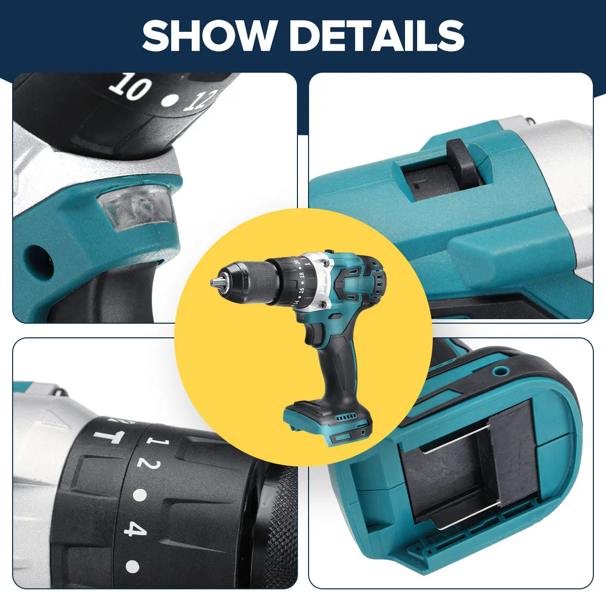 Аккумуляторная дрель-перфоратор, бесщеточная электрическая отвертка 3 в 1, 2 скорости, 13 мм, 20 + 3