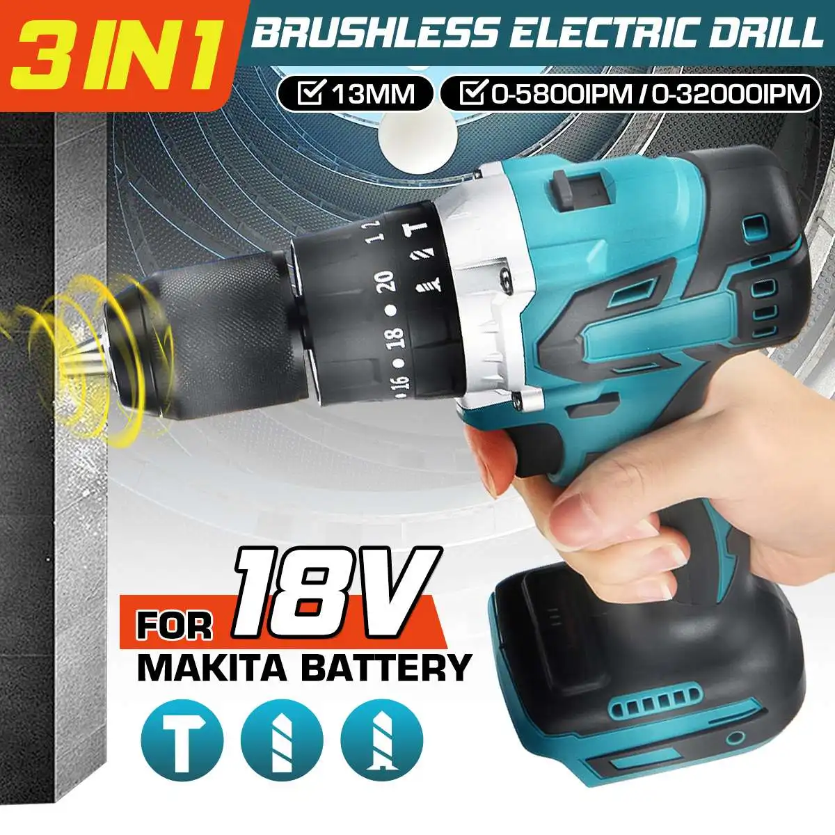Электрическая дрель 18 в, перезаряжаемая бесщеточная трехфункциональная Ударная дрель с двумя скоростями