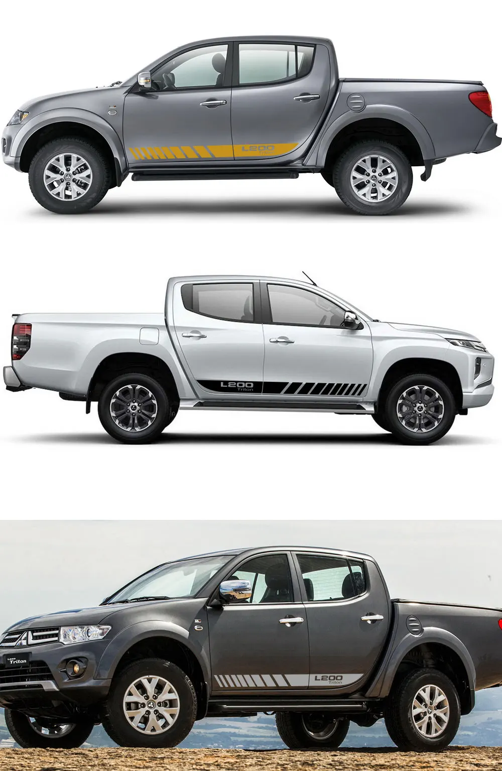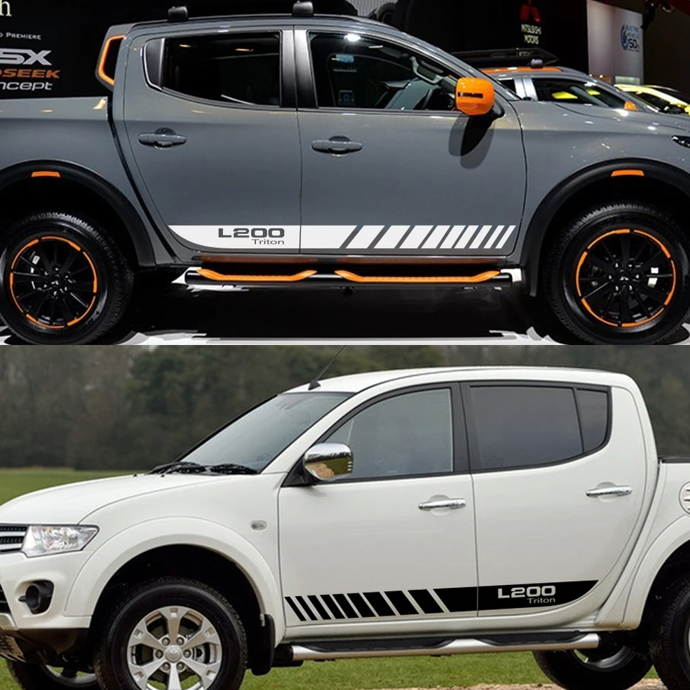 2 шт. автомобильные наклейки с длинными боковыми полосками, наклейки для Mitsubishi L200 Triton, внедорожник, авто тюнинг, пикап, сделай сам, виниловая пленка, аксессуары
