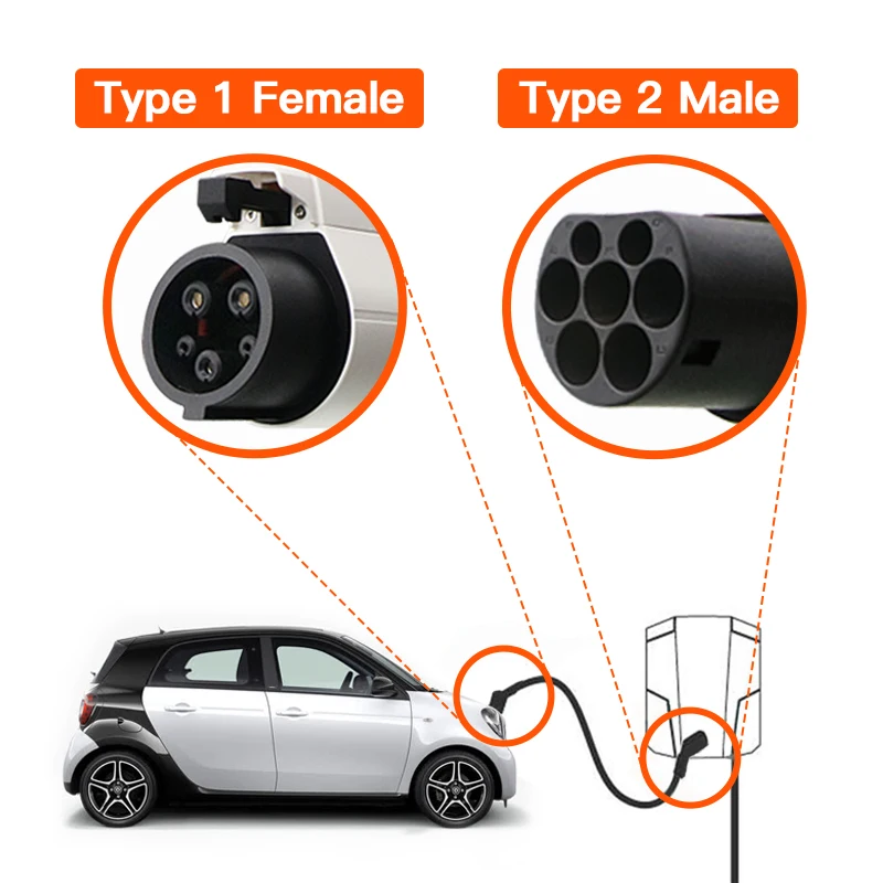 Кабель EVSE, 7,2 кВт, 32 А, тип 1 и тип 2, соответствует стандарту ...