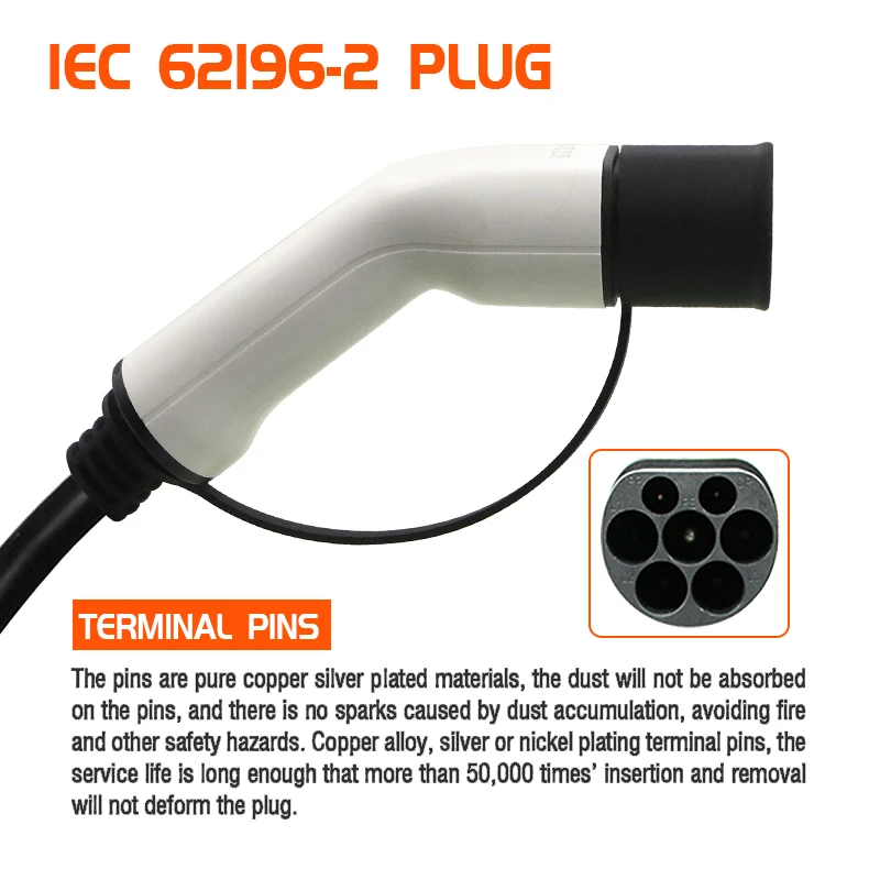 1. Длина шнура зарядного устройства: 5 м2. Номинальное Напряжение: 220/250V3. Номинальный ток: 32A4. Рабочая температура: -30 ℃ ~ + 55 ℃5. Рекомендуется использовать в помещении6. CE признанный компонент