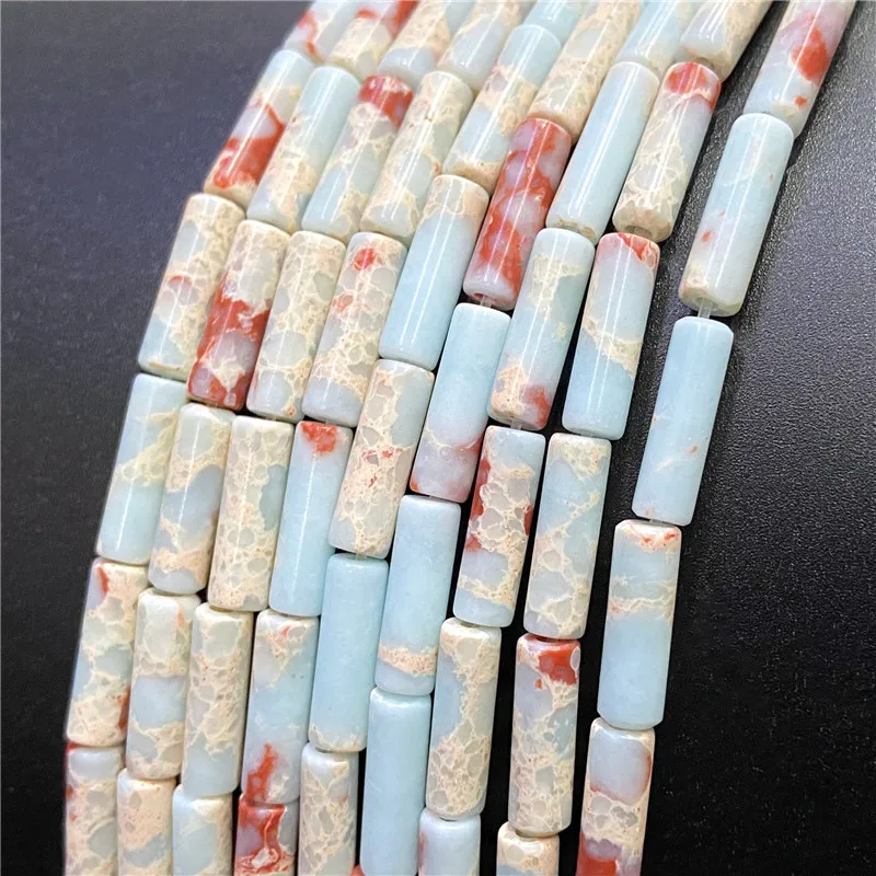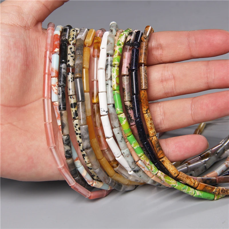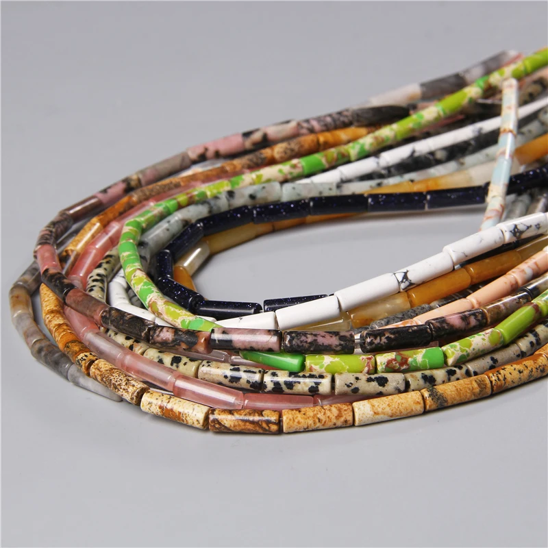 Бусины Цилиндрические из натурального полудрагоценного камня, 4x13 мм