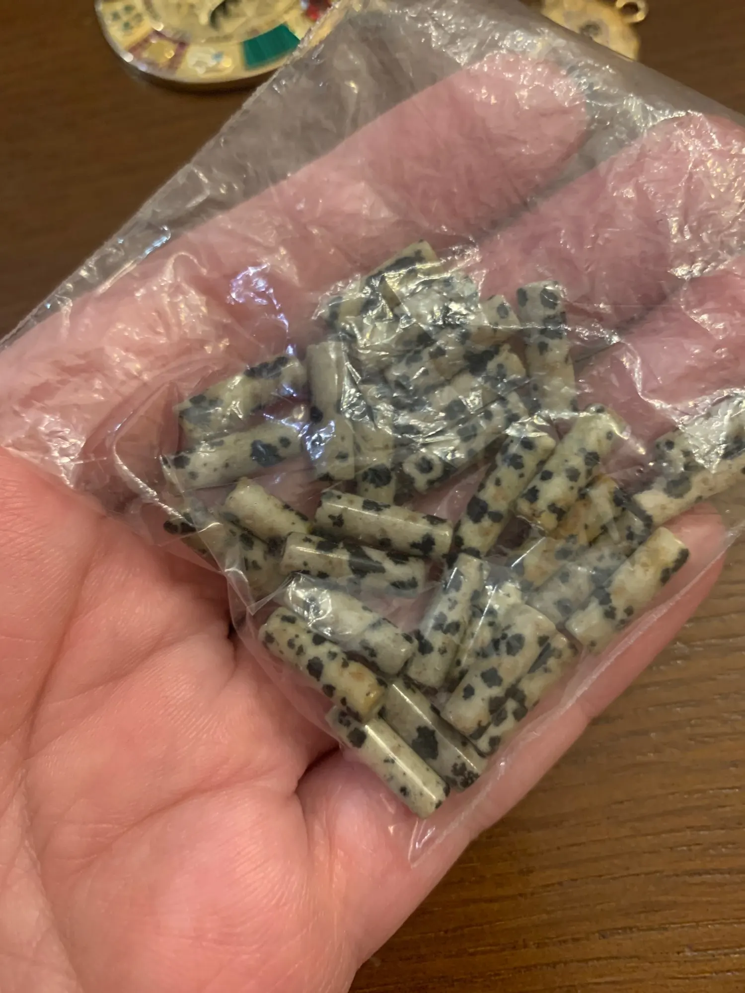 Отличные бусины, похоже на натуральный камень - приятно холодит. Не было сломанных, было несколько с неровными краями, но не критично. До Екб заказ дошёл за 18 дней.