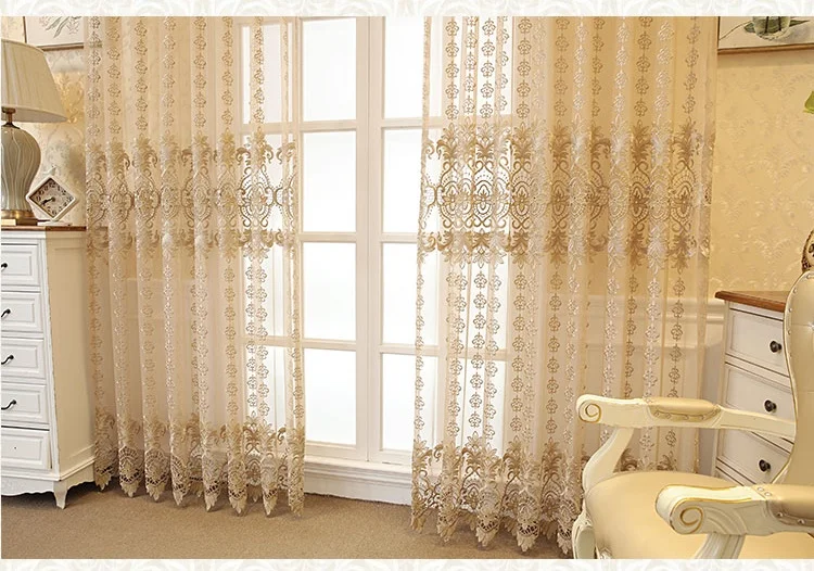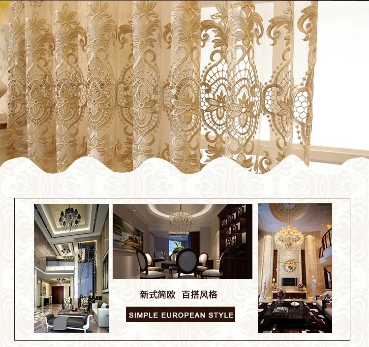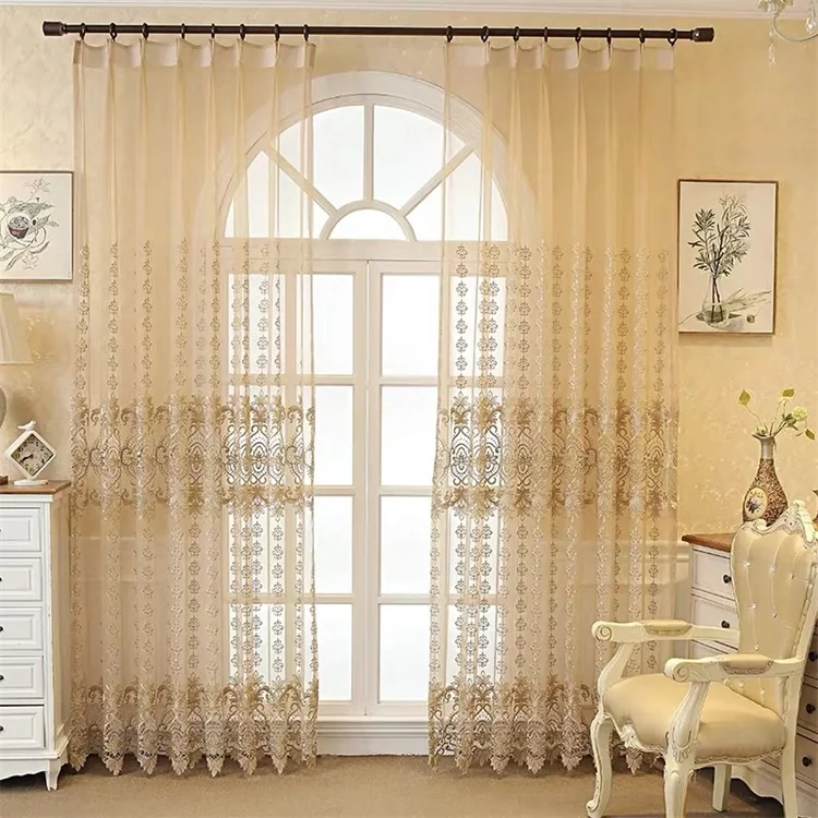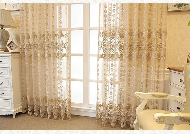 Европейские полые прозрачные шторы с вышивкой для гостиной, элегантные роскошные бежевые желтые водорастворимые шторы с вышивкой ZH445F