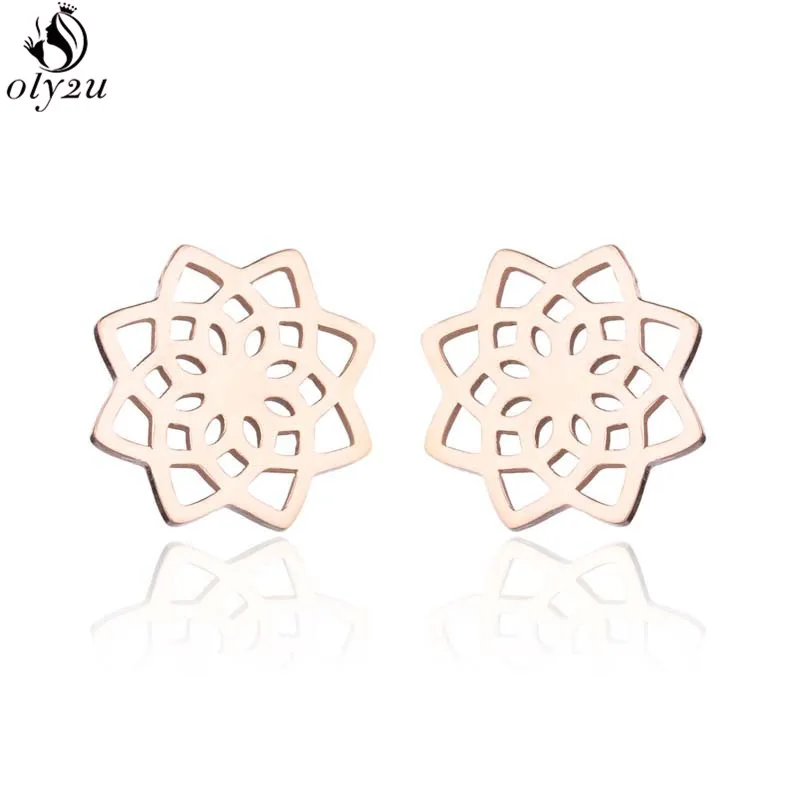 Маленькие серьги цветок лотоса для женщин и девочек из нержавеющей ...