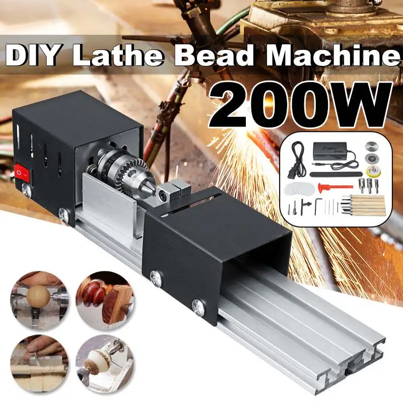 Токарный мини-станок, 200 Вт, 12-24 В, для шлифовки и полировки жемчуга Будды + набор резцов для резьбы