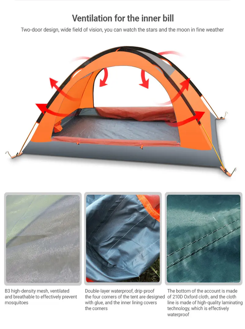 Туристическая двухслойная палатка, двухместная, водонепроницаемая, ...