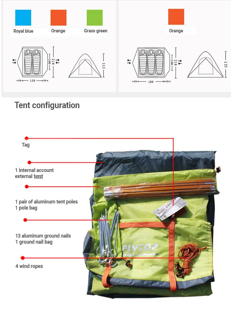 Flytop Наружная палатка для кемпинга, 2perons большая двухслойная а...