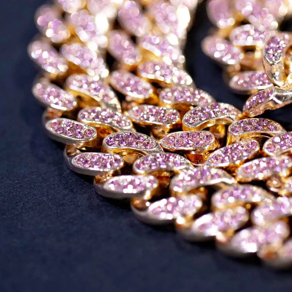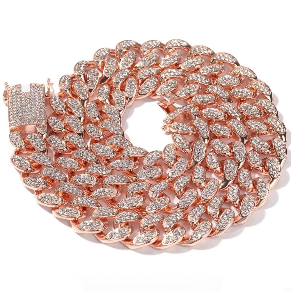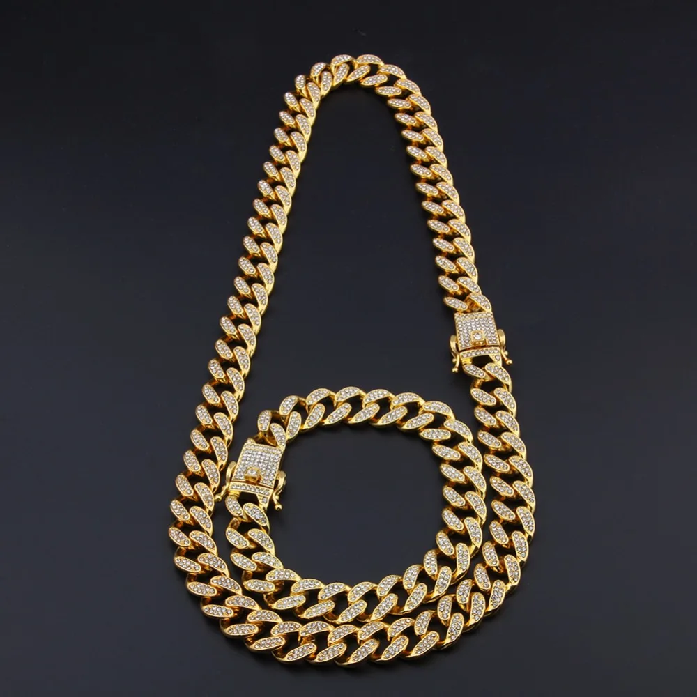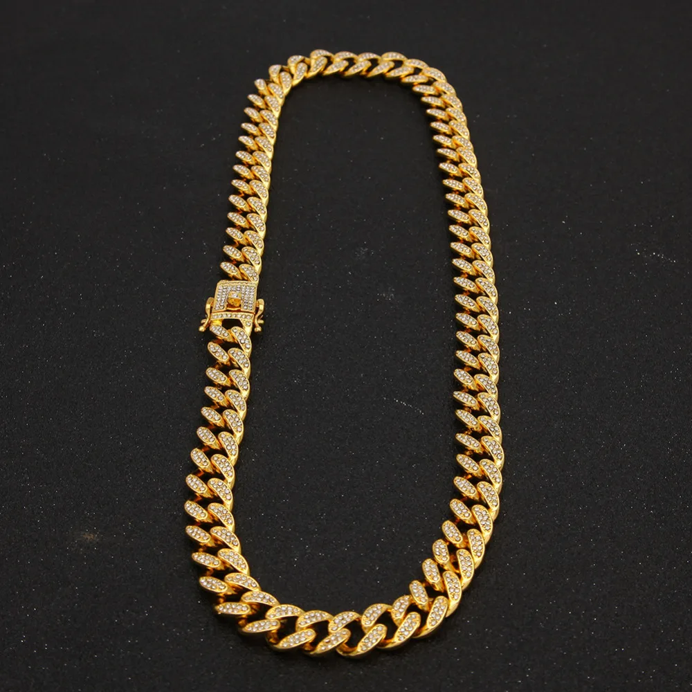 Цепочка-чокер Мужская, 13 мм, с кубинским покрытием, золотого и серебряного цвета, стразы