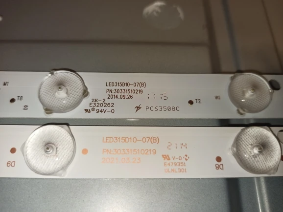 Заказывал со склада в России с доставкой в Иваново. На четвёртый день привез курьер. Планки алюминий,наклеен двухсторонний скотч , к сожалению обычный не теплопроводный. Установлены в телевизор Mystery Mtv -3228lt2. По крепежу 1 в 1 с оригиналом. Свет белый холодный.