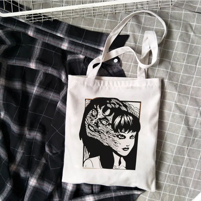 Женская сумка в стиле японского аниме ужасов, 2021, в стиле Харадзюку, Готическая, повседневная, темная, большая емкость, сумка, многоразовая, модная, Холщовая Сумка на плечо