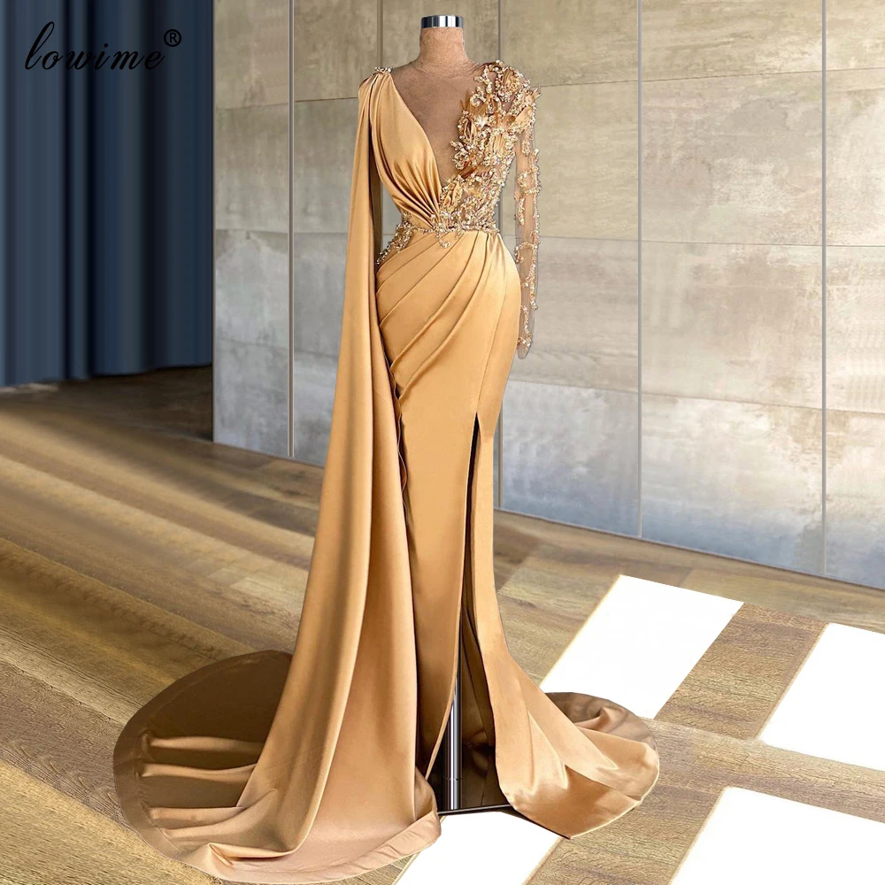 Одежда с длинным рукавом мусульманских Платья знаменитостей Длинные бусы Русалочки вечерние платья для Для женщин Ближнего Востока для выпускного вечера вечерние платья платье 2021
