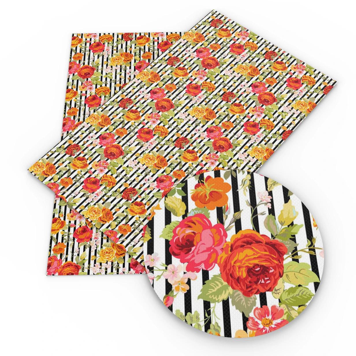 Листы из искусственной кожи с цветочным принтом, 20x33 см