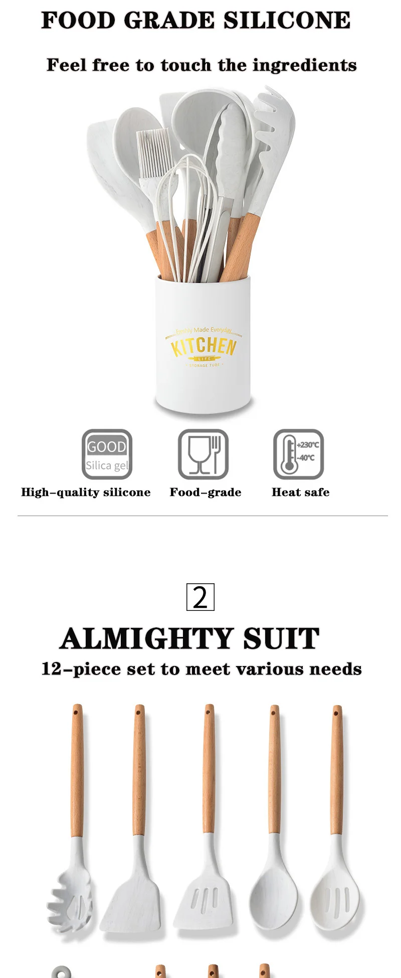 Белый набор из 11 силиконовых кухонных принадлежностей, Аксессуары ...