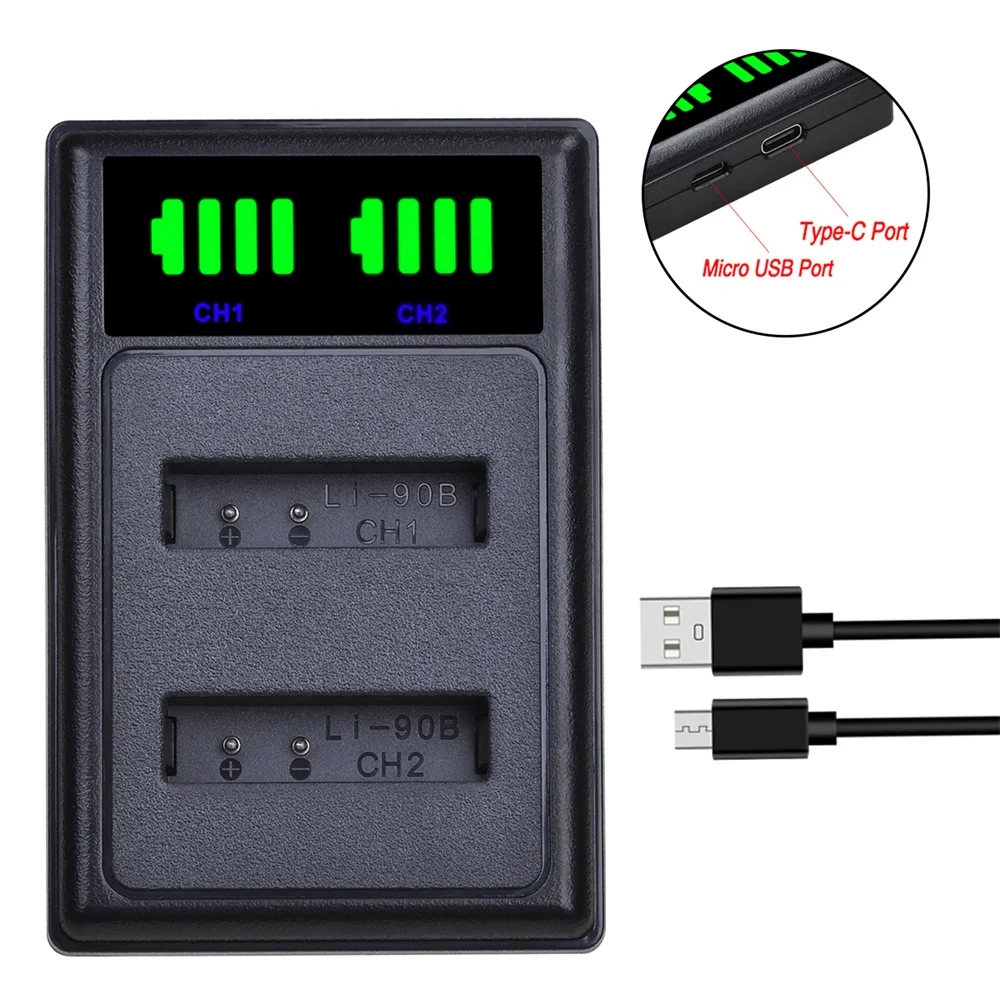 Аккумулятор Li-90B Li-92B + двойное зарядное светодиодный подсветкой с портом Type-c и USB