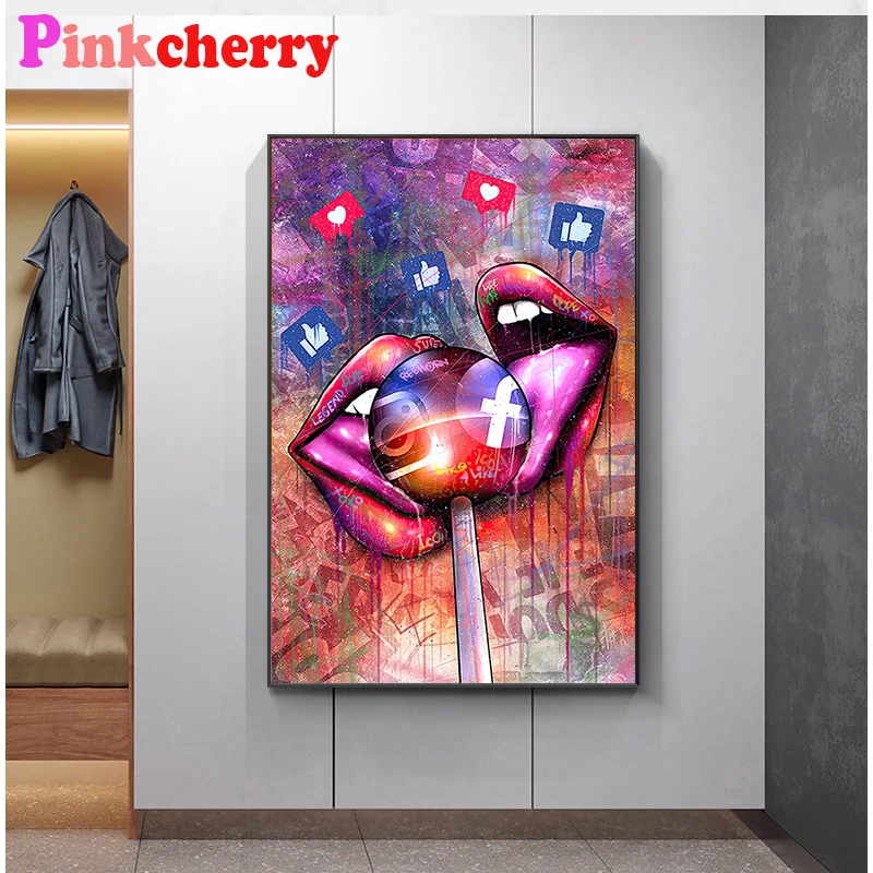 Алмазная живопись 5D, алмазная вышивка, вышивка крестиком, граффити, красные губы, леденец, алмазы ручной работы, Полная работа, квадратныйкруглый