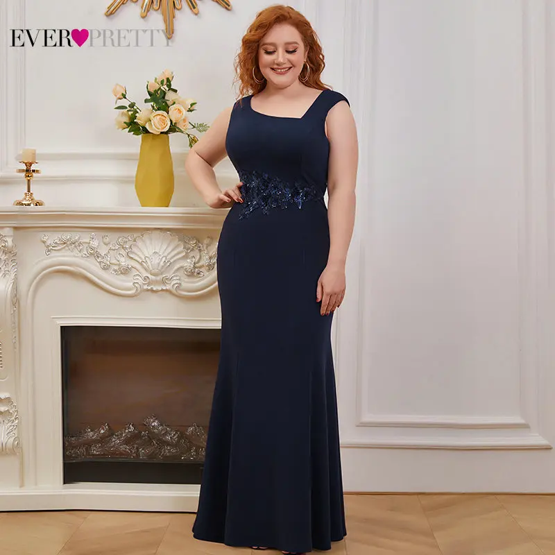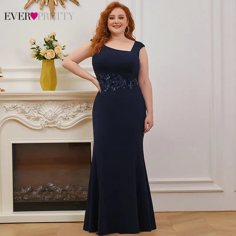 Темно-синие платья для матери невесты размера плюс, красивое элегантное платье с аппликацией в виде цветов русалки, вечернее платье для вечеринки, Vestidos EM00131